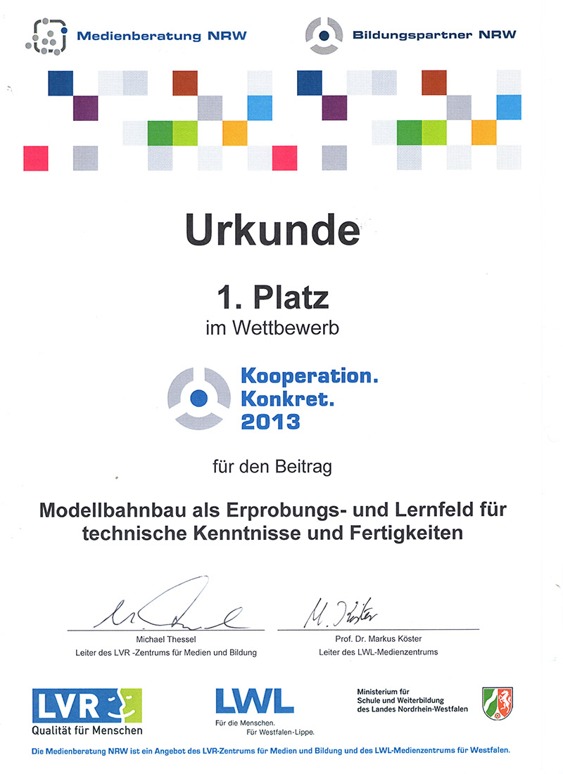 Unser 1. Platz im Wettbewerb " Kooperation Konkret 2013 "